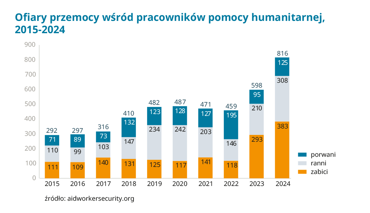 Liczby podsumowujące miniony rok są przerażające. Wszystko wskazuje, że ten rok będzie jeszcze gorszy. Do połowy sierpnia zginęło już 256 pracowników humanitarnych, którzy z narażeniem życia nieśli pomoc potrzebującym. Takie naruszanie międzynarodowego prawa humanitarnego jest nie do zaakceptowania. Pracownicy humanitarni muszą być chronieni, a sprawcy ataków na nich pociągnięci do odpowiedzialności