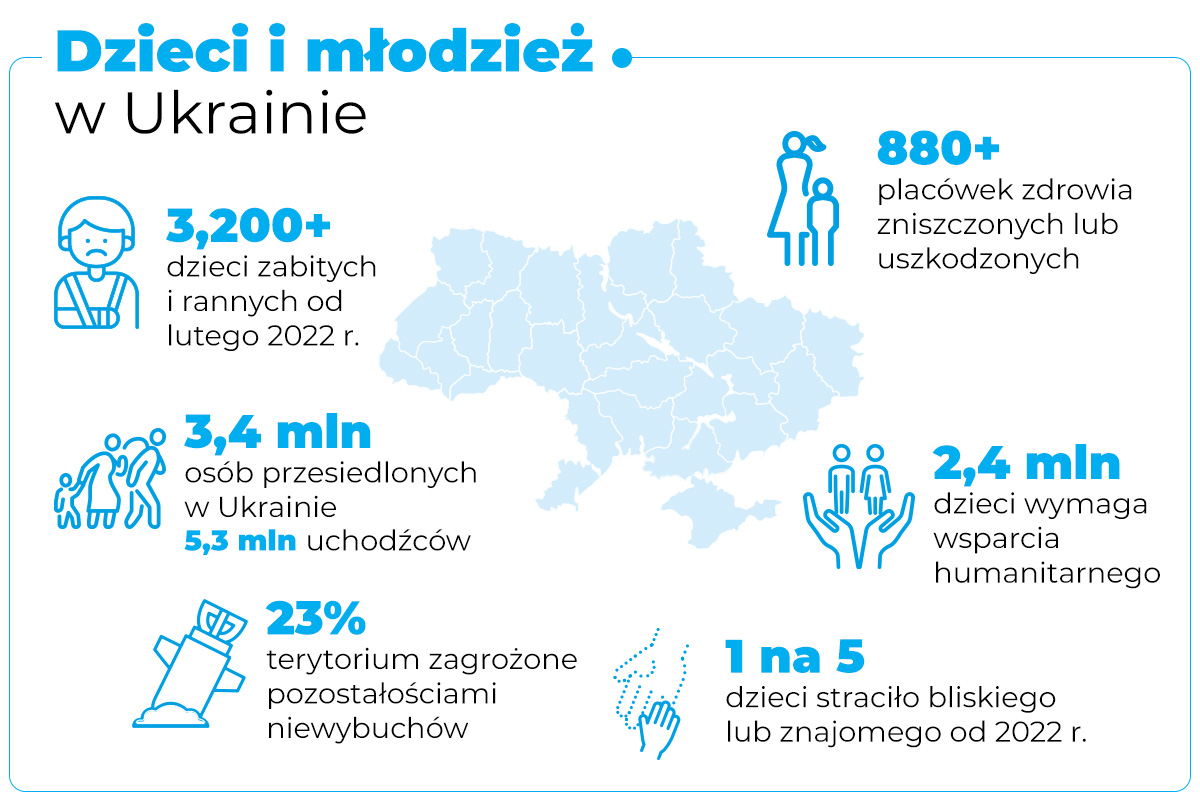 Koszmar dzieci w Ukrainie trwa już czwarty rok. Miliony rodzin uciekły z domów w poszukiwaniu bezpiecznego miejsca do życia. Ci, którzy zostali, żyją w stałym zagrożeniu atakami, gdy rakiety i drony cały czas spadają na cele cywilne. W połączeniu z koniecznością chronienia się w piwnicach czy stacjach metra, a także izolacją w domu i ograniczeniem kontaktów społecznych, powoduje to poważne konsekwencje dla zdrowia psychicznego i fizycznego najmłodszych